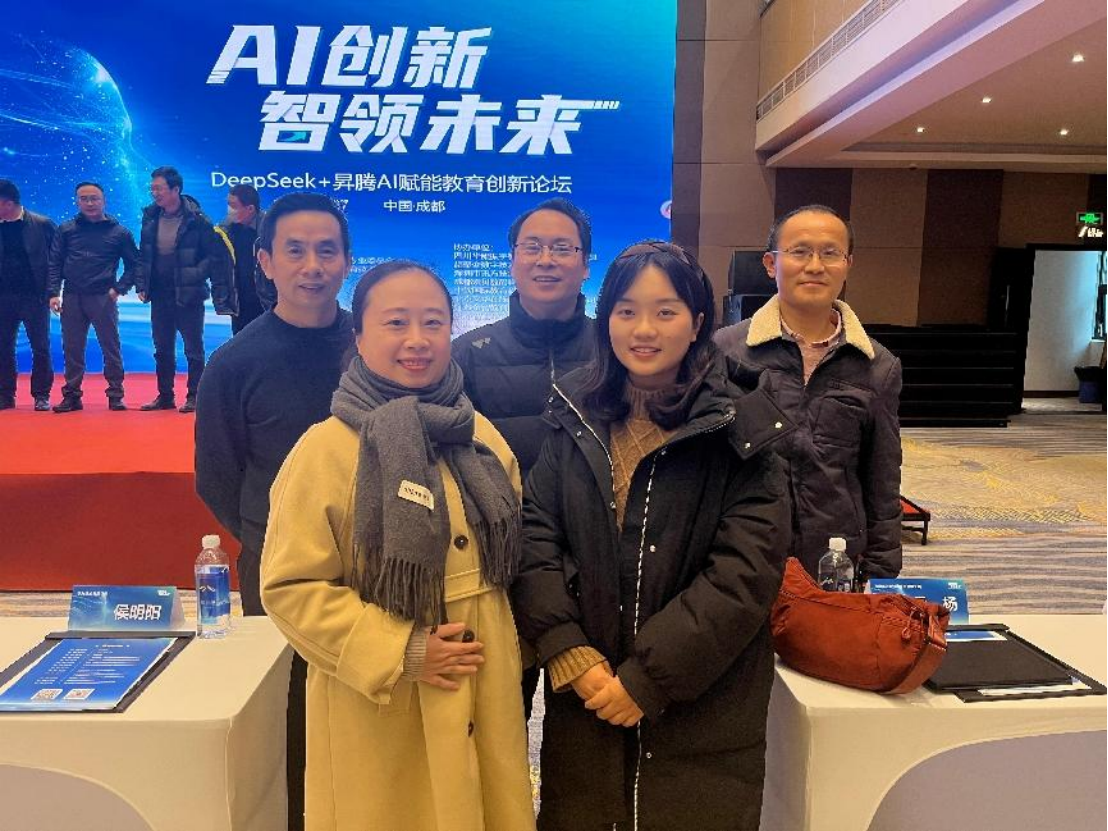 2025年3月7日,四川乡村教育发展研究中心主任吴永胜、副主任唐前军,以及教育学系张晓玲、徐竹君等,前往成都凯宾斯基酒店,参加四川省教育装备协会高等教育技术专业委员会、四川省高等教育学会教育信息化专业委员会、四川省人工智能学院等联合主办的“deepseek+晟腾 AI赋能教育创新研讨会”。